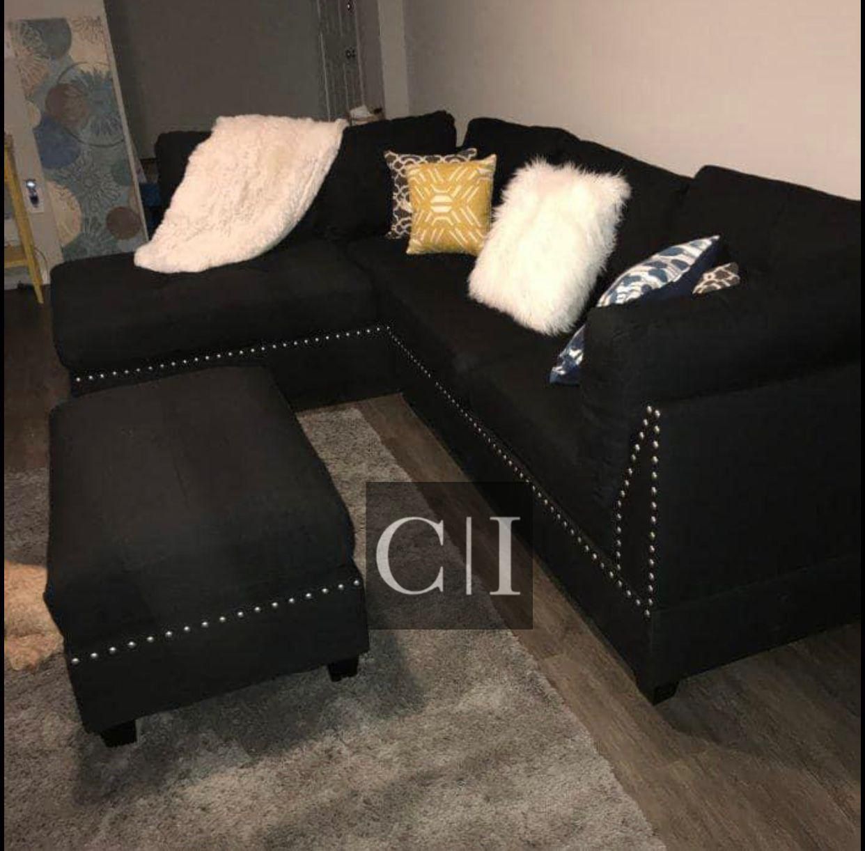 - Home & Garden >Furniture > New Black Sectional Sofa Couch Ottoman